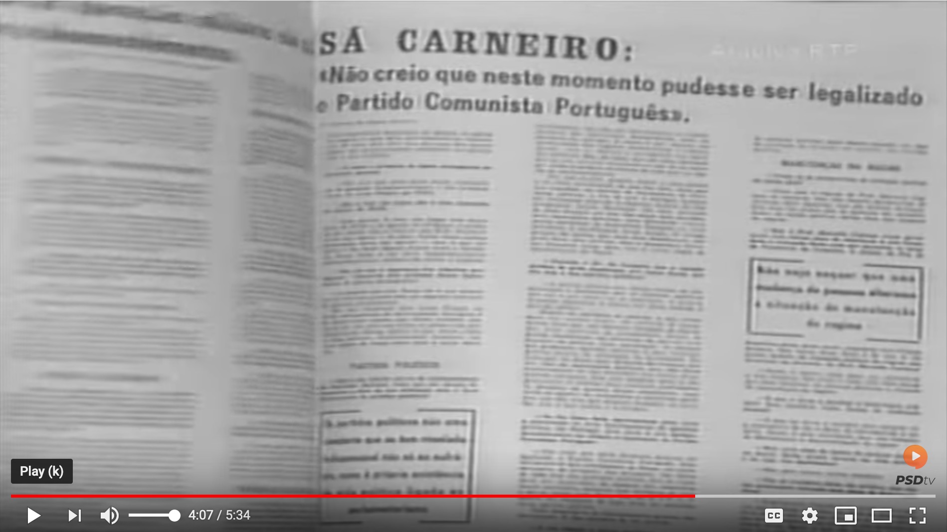 Aliás, esta parte é francamente omitida pelo próprio PSD quando fez um vídeo promocional do papel da ala liberal do regime de Caetano, que quase surge como a verdadeira causa da instauração da democracia. O video enaltece as posições quase de esquerda - socializantes e social-democratas - de Sá Carneiro, mas passa a mata-cavalos pela página em que Sá Carneiro quer manter o PCP na ilegalidade e, por isso, talvez nas prisões (veja-se ao redor do minuto 4 que passa a correr):